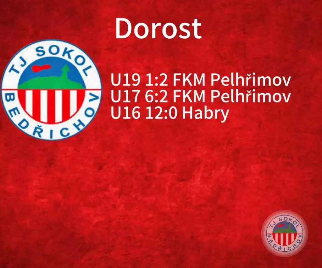 Dorostenecké kategorie TJ Sokol Bedřichov mají za sebou další porci mistrovských utkání. Výsledkově se tentokrát více dařilo mladším kategoriím. Tým U17 rozstřílel Pelhřimov po skvělém druhém poločase, U16 si připsala rekordní vítězství. Naopak starší dorost U19 odešel těsně poražen a čeká ho rozhodující utkání o udržení.